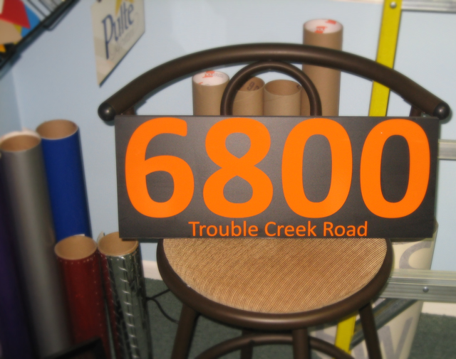 This is street number plaque that we put together to help people find their way. Big enough and bright enough for people driving by to see.