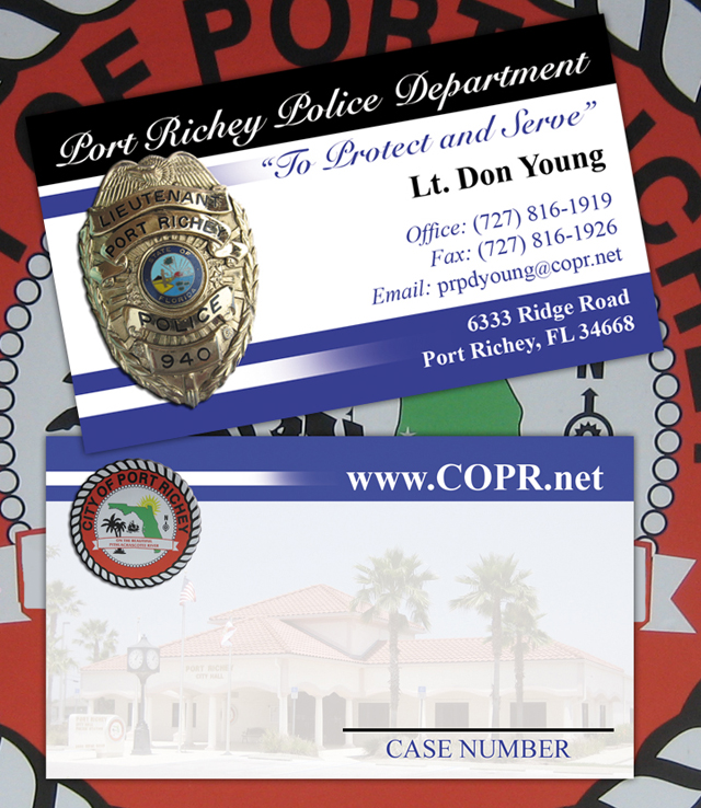 The Port Richey Police Department just got a little bit better. It seems that Don Young has been promoted to Lieutenant. He placed an order for some new business cards with his new badge proudly displayed on them.