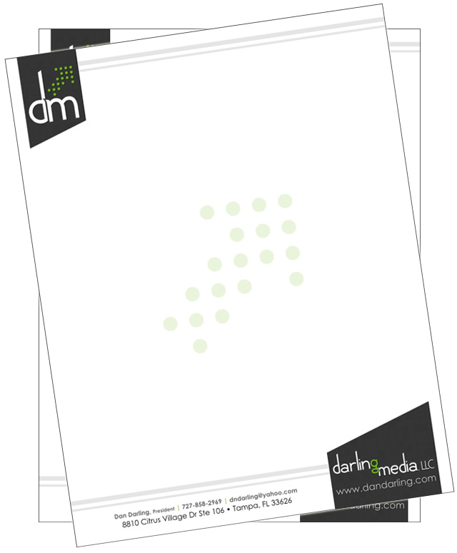 Here is the letterhead that we put together for darling media. It works well with the logo and keeps everything headed in the same direction.